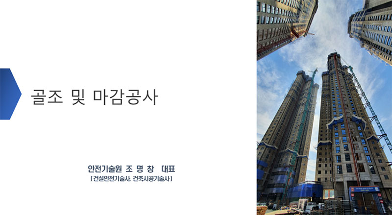 비계, 거푸집 & 동바리, 흙막이지보공, 골조 및 고층공사 시공 안전에 대한 교육.