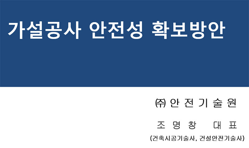 발표내용 : 가설구조물에 대한 이해와 시공관리 (발표자 안전기술원 조명창 대표)