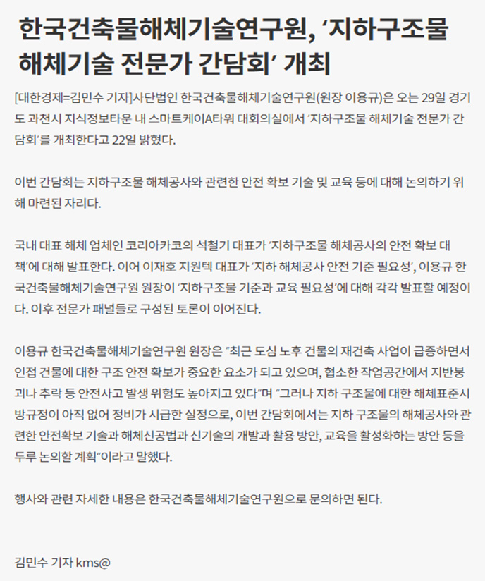 지하구조물 해체기술 전문가 간담회